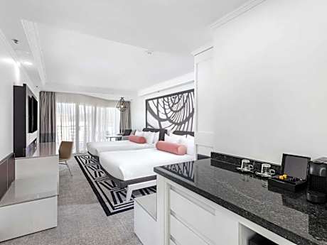 El Pullman Cairns International se encuentra en el centro de Cairns. Todas las habitaciones cuentan con amplios balcones con vistas al puerto o a las montañas. Las habitaciones ejecutivas ofrecen sala de estar y comedor independientes. Son las habitaciones más grandes de Cairns, con más de 40 metros cuadrados, elegantemente decoradas con artículos de primera calidad, comodidades y balcones privados con vistas al puerto o al interior. La piscina al aire libre está rodeada de jardines tropicales. Rejuvenezca en el lujoso Vie Spa, que ofrece exfoliaciones corporales, masajes, tratamientos para hombres y paquetes de spa en una de sus 10 salas de tratamiento. Coco's Kitchen + Bar ofrece desayuno buffet frío y caliente y un menú de cena a la carta elaborado con los mejores productos de la región. El bar del vestíbulo sirve cócteles exóticos y deliciosos aperitivos. El Pullman Cairns se encuentra a 5 minutos a pie del Centro de Convenciones de Cairns. El muelle de Cairns está a solo 500 metros.