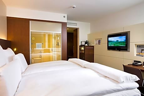 Este hotel de 4 estrellas superior ofrece habitaciones tranquilas en el distrito comercial de Colonia, a 10 minutos a pie de la Catedral de Colonia. El Pullman Cologne ofrece un spa de lujo y amplias habitaciones de diseño moderno. Las elegantes habitaciones del Hotel Pullman Cologne incluyen aire acondicionado, TV de pantalla plana y un moderno baño con bañera y ducha. Hay internet de alta velocidad disponible por un suplemento diario y wifi gratuito en las zonas comunes. Los huéspedes del Pullman pueden relajarse en la brasserie elf con terraza de verano. LAB12 es el bar del hotel, inspirado en los perfumes de Colonia, la ciudad de las fragancias, y sirve bebidas aromáticas. El spa incluye sauna, gimnasio y también ofrece tratamientos de masaje. El Pullman Hotel Cologne dispone de aparcamiento subterráneo. Se encuentra a 400 metros de la estación de metro Friesenplatz, a solo 2 paradas de la estación central de Colonia.