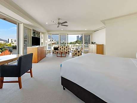 Featuring elegant rooms with a spa bath and a balcony overlooking Cairns or Trinity Inlet, Pullman Reef Hotel is only 820 feet from Cairns Esplanade. It features a casino and 4 bars with live music. The modern air-conditioned rooms have flat-screen cable TV and a tea and coffee maker. Each room has a large bathroom with luxury C.O. Bigelow toiletries. Pullman Reef Hotel Casino is 5 minutes’ walk from Cairns Convention Center, and 15 minutes’ drive from Cairns Airport. Pullman Reef Hotel features a rooftop swimming pool, spa pool and sauna. The tour desk can arrange activities such as diving and snorkeling, and day trips to the Great Barrier Reef. The award-winning Tamarind Restaurant features Thai-inspired fusion cuisine. Flinders Bar & Grill offers light meals in a casual setting.