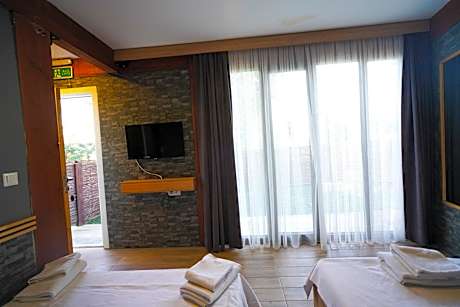 This air-conditioned triple room features a seating area, a patio, garden views and a private bathroom. The unit offers 2 beds.
