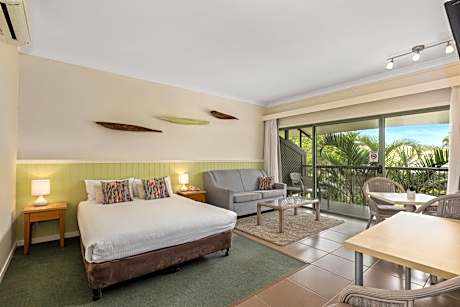 Ballina Beach Resort is located adjacent to Lighthouse Beach in East Ballina and just to the south of Byron Bay. The property features free WiFi and free private parking on site. The air-conditioned rooms of the hotel present modern furnishings and a fridge. All the rooms have balconies overlooking 3 acres of lush tropical gardens. Ballina Beach Resort offers an array of activities including tennis and fishing. The hotel is 656 feet from Lighthouse Beach and 5 minutes' from Ballina Airport. Byron Bay is 20 minutes away by car.