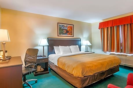 The Quality Inn Bend North hotel is located just off U.S. Highway 97 at the north end of Bend. Central Oregon is the place to be for year-round outdoor recreation, including skiing, snowmobiling, fishing, boating, hunting, hiking and sightseeing. Mt. Bachelor ski area and Smith Rock State Park are just 20 miles from this hotel. Roberts Field-Redmond Municipal Airport, the gateway to central Oregon, is only 10 minutes away. The High Desert Museum, where visitors can enjoy regular live animal interpretations and living history demonstrations, is also close by. Experience the Lava Lands of central Oregon by visiting the Newberry National Volcanic Monument, only a short drive away. The nearby Deschutes River is famous for its beauty, fishing and rafting. Several shopping malls are minutes from the hotel. A wide variety of dining options are in the surrounding area. Guests at this hotel will enjoy many amenities, like: free wireless high-speed Internet access in all rooms, free deluxe continental breakfast, free local calls, free coffee and indoor heated pool, hot tub, and fitness center. This is a pet-friendly hotel, and only a small nightly fee applies. Business travelers will appreciate the public computer with Internet access and printer. Access to copy and fax services is available for all guests. All guest rooms come equipped with microwaves, refrigerators and cable TV with a free movie channel. Please ask about the suites, whirlpool rooms and rooms with mountain views. Laundry facilities are on the property for added guest convenience.
