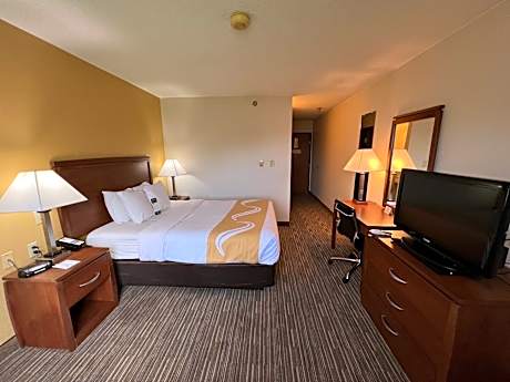 The Quality Inn Mitchell I-90 hotel is located north of Interstate 90, six miles from the Mitchell Municipal Airport. This Mitchell, SD hotel provides easy access to many local attractions, including the Corn Palace Convention & Visitors Bureau, Cabela's, Mitchell Prehistoric Indian Village, Thomsen Center Archeodome and Lake Mitchell. Mitchell, South Dakota is home to many indoor and outdoor activities like bowling, golfing, hockey and boating. True outdoor enthusiasts will enjoy hunting and fishing in the area. Many festivals occur throughout the year, including Summer Solstice, the Corn Palace Festival and Dakotafest. Numerous restaurants and lounges are available around Mitchell. This Mitchell, SD hotel features many amenities, including: free continental breakfast, free wireless high-speed Internet access, free local calls, free coffee. An indoor heated pool, hot tub and sauna are all located on hotel premises for guest enjoyment. Business travelers will appreciate additional conveniences like multiple telephone lines, access to fax services and meeting rooms. All guest rooms at this Mitchell hotel are nonsmoking and contain cable television, coffee makers, hair dryers, irons and ironing boards. In-room whirlpool bathtubs are also available. The hotel offers cold weather hookups and ample parking for trucks, cars and buses.
