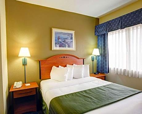 The Quality Inn & Suites Baylor Stadium North hotel is conveniently located with easy access to Interstate 35, just two miles from Baylor University. This hotel is minutes from the River Bend Park baseball facility, Cameron Park Zoo, the Dr Pepper Museum, the Ferrell Center arena and the Heart O' Texas Fair Complex, home of the annual Heart O' Texas Fair & Rodeo and numerous other events throughout the year. Additional nearby points of interest include the Floyd Casey Stadium football field, Waco Hippodrome theater, Mayborn Museum Complex, Waco Lake and the Waco Water Park. Located between Dallas and Austin, Waco is famous for its Texas history and hospitality. Enjoy the revitalized downtown area and restored warehouse district with restaurants, clubs and specialty shops. Take a nice walk on the scenic walk along the Brazos River. Hotel amenities and features include free wireless and wired high-speed Internet access, free local calls, exercise room, Meeting room and business center. After an exciting day of seeing all the area has to offer, guests of this Waco hotel will enjoy relaxing in the seasonal outdoor pool. Business travelers will appreciate a large work desk with ergonomic chair in all rooms. The meeting room accommodates up to 40 people. All guest rooms come equipped with refrigerators, microwaves, sofa sleepers, coffee makers, desks, hair dryers, irons, ironing boards, voice mail, wet bars and cable TV. The property has one-room suites, one-bedroom suites and equipped kitchen suites. Non-smoking rooms are available.