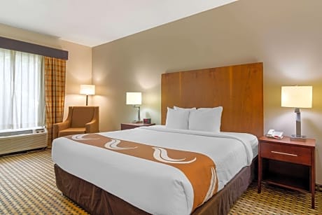 Located off Interstate 20, the Quality Inn & Suites Decatur - Atlanta East offers easy access to the eclectic galleries, shops and performance venues that consist of its downtown area and Oakhurst Community, as well as area events like the Decatur Arts Festival and the AJC Decatur Book Festival. Guests of the Quality Inn & Suites hotel are invited to relax in the seasonal outdoor pool and work out in the exercise room. Additional amenities include, Free hot breakfast, Free wireless high-speed Internet access and free daily newspaper. All guest rooms offer cable television, a coffee maker, hair dryer, microwave, refrigerator, iron and ironing board. Some rooms feature a whirlpool, chair with ottoman, desk and sofa sleeper. Guests of the hotel will appreciate being able to get work done in the business center. There is one meeting room, with the hotel able to accommodate 25 people for conferences.