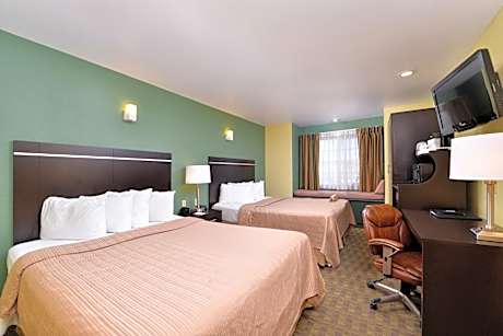 The Quality Inn & Suites hotel is conveniently located on Interstate 80, a great resting place between California, Utah and Idaho. This hotel is close to several local attractions and festivals like the National Basque Festival, the National Cowboy Poetry Gathering at the Western Folklife Center, the Perch and Trout Derby and Lamoille Canyon. The nearby Ruby Mountains offer hiking, camping, snowmobiling, hunting and fishing. The Elko Regional Airport is only two miles away. Visitors will also enjoy local activities like the Winnemucca's Ranch Hand Rodeo, the Silver State Stampede rodeo, jazz festivals, concerts, mining expos and the Elko County Fair. Several shops, the Red Lion Casino and a variety of restaurants are within walking distance. Guided half-day and day tours are available to surrounding areas and nearby gold mines. Elko was named the "Best Town in America" in Norman Crampton's book, The 100 Best Small Towns in America. Guests of this hotel will enjoy many full-service amenities including fitness center, free hot breakfast, free local calls and free coffee in the lobby. Business travelers will appreciate conveniences like free wireless high-speed Internet access in all rooms and access to copy and fax services. All of the spacious and clean guest rooms include microwaves, refrigerators, coffee makers, irons, ironing boards and cable television with free HBO. Junior Suites with sofa sleepers are also available.