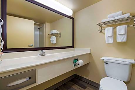 Quality Inn & Suites North Myrtle Beach North Myrtle Beach is a 5 minutes' drive from the beach. Guests can start their day with a complimentary breakfast, and then take a refreshing plunge in the seasonal outdoor pool. Complimentary WiFi is available to all guests. All guest room at this hotel come equipped with microwaves, refrigerators, and coffee makers. Some rooms feature whirlpool bathtubs. Nonsmoking rooms are available. Guests will enjoy the convenience of free local calls, free newspapers, and a fax/copy services. Meeting facilities are offered onsite. Beachwood Golf Club is 3.4 mi from the property. Broadway at the Beach is a 25 minutes's drive from the Quality Inn & Suites North Myrtle Beach North Myrtle Beach. Myrtle Beach International Airport is 26 mi away.