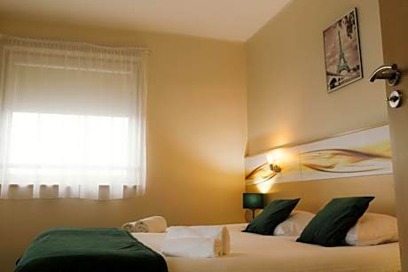 A room with individually-controlled air-conditioning, broadband Wi-Fi, wired Internet access and an LCD TV with Canal+ channels. There are tea/coffee facilities and complementary bottled water.