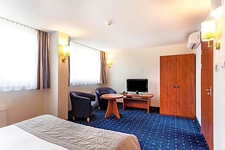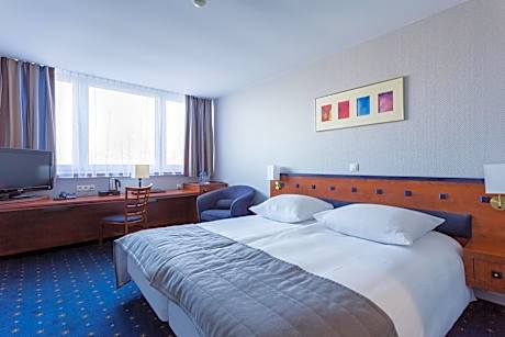 Located in the city center, just 820 feet from Legnica Railway Station, 4-star Qubus Hotel Legnica offers rooms with satellite TV and free Wi-Fi. Rooms at the Qubus Hotel Legnica include a private bathroom. Guests enjoy free access to the hotel’s spa and wellness facilities which include a sauna, hot tub and gym. Some rooms come with air-conditioning. The Qubus Legnica’s air-conditioned restaurant serves international dishes. Guests are also welcome to visit the hotel’s lobby bar and the Irish pub. The hotel breakfast consists of over 100 fresh products, including smoked regional sausages, cheese, salads and hot dishes. The front desk is open 24 hours a day and luggage storage is offered. The hotel is located in the very center of Legnica. It is 1969 feet from Legnica Cathedral and beside Piast Castle, one of the oldest castles in Poland. Wrocław is 43 mi away, while the Wrocław Airport is 40 mi from the property. Ski Arena Łysa Góra is 31 mi from Qubus Hotel Legnica.