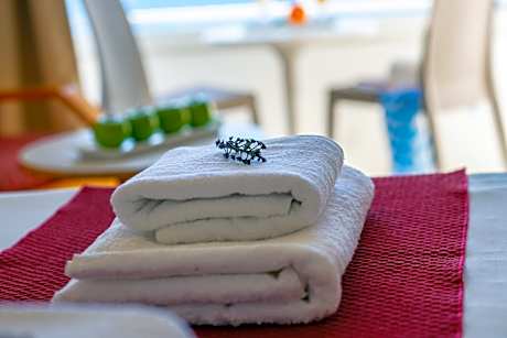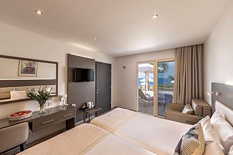 Set on a secluded bay, Queens Bay Hotel features outdoor pools, a padle court and a fitness room with sauna. Its extensive gardens stretch down to the beach. Free WiFi is available in all areas. All guest rooms at Queens Bay Hotel are air-conditioned and equipped with satellite TV, hairdryer and a private bathroom. Queens Bay features a pool terrace offering panoramic sea and sunset views. Guests can also relax in the sauna or try their skills in French Bowls, table tennis and archery. The Cassiopia Restaurant offers a variety of fresh Mediterranean dishes. In the evening, guests can have a drink and enjoy live music entertainment at the hotel’s bar. Hotel Queens Bay is 0.9 mi away from Kissonerga Village and 10 minutes’ driving from Paphos Town. The hotel is half way between the ancient site of The Tombs of the Kings and the popular Coral Bay. Free on-site parking is possible.