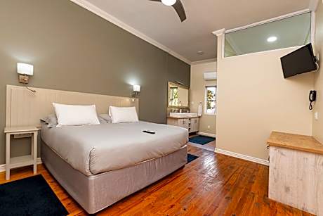 The Queen's Hotel is a colonial-era nonsmoking hotel in the heart of Oudtshoorn. It offers rooms decorated with antique furnishings and a swimming pool in a secluded courtyard. Free WiFi is available. Each of the guest rooms include air-conditioning, satellite TV, tea-and-coffee making facilities and direct-dial telephone. The Colony at the Queen's offers gourmet dining made with top South African produce and an extensive wine list. Cafe Brule, located at the front entrance of The Queen's Hotel, offers coffee and light meals. The C.P Nel Museum is within walking distance and the Cango Wildlife Ranch is only 1.9 mi away. The Cango Caves are within 30 minutes' drive.
