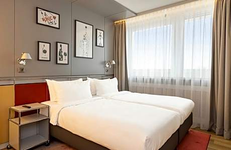Este moderno hotel de 4 estrellas en Erfurt se encuentra a unos 10 minutos a pie del casco antiguo. Ofrece spa y gimnasio, vistas panorámicas y wifi gratuito en todas las zonas. El NYX Hotel Erfurt by Leonardo Hotels ofrece elegantes habitaciones con modernos baños privados y vistas a la ciudad. Quienes no deseen correr por las orillas del Gera para mantenerse en forma pueden utilizar el luminoso gimnasio panorámico y la zona de bienestar. El Radisson Blu de Erfurt ofrece un completo desayuno bufé cada mañana. Los huéspedes pueden relajarse con un cóctel en el bar del hotel y cenar en el bistró y restaurante Classico. La estación principal de tren de Erfurt está a solo 10 minutos a pie del hotel.