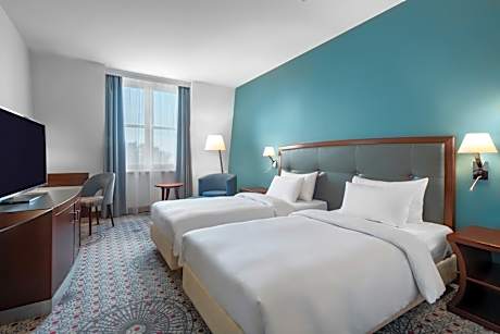 Radisson Blu Hotel Wroclaw is located opposite the famous Panorama of the Battle of Racławice. It offers air-conditioned rooms with free Wi-Fi. There are a 24-hour sauna and fitness center available. The hotel’s Aquarelle Restaurant hosts the Super Breakfast Buffet where a varied breakfast is served until late. Guests can have a drink at the Sqwiggles Bar. Room service is available 24 hours a day. All rooms at Radisson Blu are modern and decorated with classic furniture. Each comes with a mini-bar, satellite and movie channels and a trouser press. A spacious bathroom features a hairdryer. Radisson Blu Hotel Wroclaw is surrounded by the Słowacki Park and located within a 10-minute walk of the Wrocław Main Market Square. Wrocław Główny Railway Station is just 1.4 mi away.