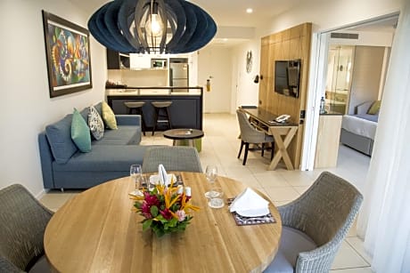 Radisson Blu Resort Fiji is spread across 10 acres of pristine beachfront on Denarau Island and is surrounded by climate controlled lagoon style swimming pools, lush gardens and bordered by the Denarau 18 hole golf course. Nadi International Airport is 25 minutes' drive from the Resort. All 270 rooms at Radisson Blu Resort Fiji have private balconies or courtyards with modern furnishings. The suites boast a full kitchen, separate lounge and dining area as well as laundry facilities. 1-bedroom, 2-bedroom suites and guest rooms are available. Radisson Blu Fiji features four diverse restaurants as well as two specialty dining restaurants. One of the lagoon style swimming pools is adults only and there is a kids pool with a white water tunnel slide. For your children's entertainment there is the Blu Bananas kids club offering a range of activities. Guests enjoy free WiFi throughout the resort. Other resort features include the Harmony Retreat Day Spa, Evolution Fiji water sports, fitness center, Lai Lai Mini Mart including a bottle shop and Lobby Shop. Airport transfers can be organized by resort at an additional cost, please contact resort directly to arrange for transfers.