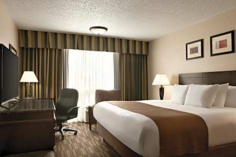 Get together at the Radisson Hotel Louisville North in Clarksville, IN, located off Interstate 65 only minutes from downtown’s vibrant riverfront and a variety of popular attractions, including Louisville Slugger Museum, Kentucky Center for the Performing Arts and Louisville Science Museum. All guest rooms at this nonsmoking hotel offer a 32-inch flat-screen television, coffee maker, hair dryer and desk. Some rooms feature a balcony with a lake view, living room, sofa sleeper, iron and ironing board. Enjoy a meal at the on-site Champions Grille and a drink on the patio at the Quarter Pole lounge. Get a good workout in the fitness center and relax in the seasonal outdoor pool and indoor heated pool. Additional amenities include free WiFi and free weekday newspapers. Get work done in the business center, and make use of 10 meeting rooms that can serve up to 320 people for banquets and 220 for conferences.