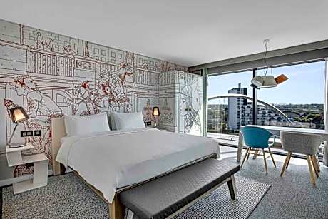 El hotel Radisson RED de Glasgow cuenta con 174 habitaciones, 3 salas de eventos y juegos, el primer bar oficial en la azotea de Glasgow, gimnasio y 76 plazas de aparcamiento. El hotel se encuentra a 200 metros de The Hydro y a 4 minutos a pie del SECC. Todas las habitaciones del Radisson RED Glasgow están equipadas con TV de pantalla plana, zona de estar, decoración mural y baño privado. Disponemos de habitaciones con vistas al horizonte de Glasgow, al campus del SEC y al río. La Sweet Suite también cuenta con mesa de billar, cocina privada y sala de estar. El OUIBar + KTCHN abre todo el día y ofrece comida, cerveza artesanal, cócteles y una mesa de billar. Los huéspedes pueden disfrutar de vistas panorámicas de Glasgow, así como de aperitivos y bebidas en el Red Sky Bar del hotel. Otras instalaciones incluyen 3 salas de eventos y juegos. El OUIBar + KTCHN es el centro gastronómico y social del hotel. Los huéspedes pueden disfrutar de cócteles o cervezas artesanales jugando al billar o viendo la televisión en su acogedora sala. Sube más tarde para contemplar la puesta de sol sobre el río Clyde y Glasgow en el RED Sky Bar del hotel. Los huéspedes pueden degustar la carta de cócteles, compartir tapas y disfrutar de la música de DJs locales. Ubicado en el West End, junto al SSE Hydro, el SEC Armadillo y el SEC Center, el Radisson RED Hotel, Glasgow está a solo 2,4 km de Buchanan Street. El aeropuerto de Glasgow está a 13 km y la estación de tren más cercana es el Exhibition Centre, a 7 minutos a pie.