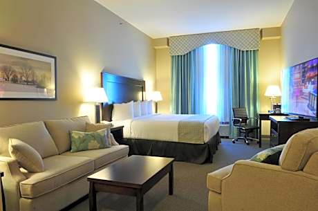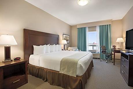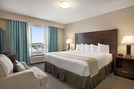 El Ramada by Wyndham Emerald Park/Regina East, situado en Emerald Park, ofrece piscina cubierta, dos toboganes acuáticos y bañera de hidromasaje. Todas las habitaciones cuentan con nevera, microondas y placa de cocina. Las suites del Ramada by Wyndham Emerald Park disponen de TV de pantalla plana de 55 pulgadas y wifi gratuito. Algunas habitaciones disponen de baño privado con bañera de hidromasaje, mientras que otras incluyen artículos de aseo gratuitos y secador de pelo. Dispone de una zona de estar para relajarse después de un día ajetreado. Los huéspedes pueden disfrutar de un desayuno caliente completo a diario. Hay gimnasio y servicios de negocios disponibles. La recepción está abierta las 24 horas. El aparcamiento es gratuito. El estadio Mosaic en Taylor Field está a 22 minutos en coche. El Museo Real de Saskatchewan está a 17,7 km. El aeropuerto más cercano es el de Regina, a 19,3 km del Ramada by Wyndham Emerald Park/Regina East.