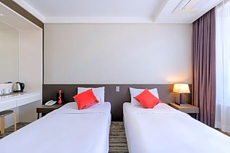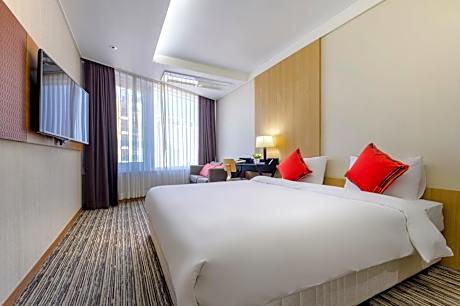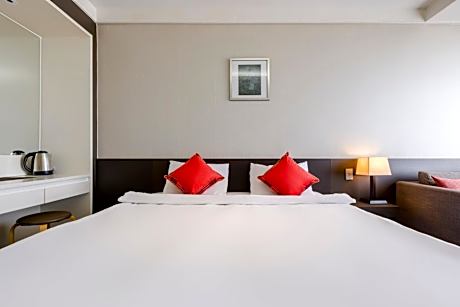Great care is taken to ensure guests experience comfort through top-notch services and amenities. Remain linked during your visit by utilizing the complimentary internet access available.The hotel offers complimentary parking for guests who arrive with their own mode of transport.Reception services featuring luggage storage are available to cater to your requirements.For extended visits or whenever required, the laundromat and laundry service ensures your preferred travel garments remain clean and accessible. Need some relaxation? Your room features daily housekeeping to make your stay even more comfortable and enjoyable.For minor or impromptu requirements, the convenience stores can promptly cater to them without the necessity of stepping out from the hotel.The hotel is completely smoke-free. Crafted for coziness, every guestroom provides an array of features, guaranteeing a tranquil night's sleep while maintaining the level of comfort. For a more enjoyable stay, select rooms at hotel are equipped with linen service, blackout curtains and air conditioning.For certain chosen rooms, guests can enjoy in-room amusement like daily newspaper, television, in-room video streaming and cable TV as a part of their stay.Rest assured that your hydration needs will be met, as some guestrooms are equipped with a refrigerator, a coffee or tea maker, bottled water, instant coffee, instant tea and mini bar. Maintain your cleanliness and comfort using a hair dryer, toiletries and bathrobes available in select guest restrooms.Chosen accommodation prices might include entry to the executive lounge, offering premium services amid an ambiance of refined extravagance. Each morning at Shinshin Hotel Jeju Worldcup, a scrumptious, homemade breakfast kick-starts the day.During your visit, indulge in a range of delightful culinary choices at hotel to enhance your experience. Indulge in the numerous pursuits available at Shinshin Hotel Jeju Worldcup.Eliminate those holiday calories by stopping by hotel and making use of their well-equipped exercise amenities.