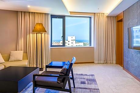 Featuring city views of Seogwipo, this air-conditioned room includes a dining area with an electric kettle and a seating area with a flat-screen satellite TV.