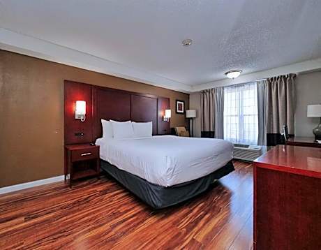 Red Lion Inn & Suites Auburn is ideally located just 30 miles from Sacramento with easy access from local freeways. The Sacramento International Airport is 35 miles away. Auburn is one of California's earliest mining towns, located in the heart of the Gold Country. Visitors will enjoy shopping at the nearby Galleria Mall and Sutter Mall. Additional area attractions include Old Town Auburn, The Ridge Golf Club and Events Center and Placer County Dewitt Center. The hotel is also close to art galleries, museums, boutiques and antique shops. A variety of restaurants are located in the area. Several outdoor activities can be enjoyed within minutes from the hotel. This Auburn, CA hotel features many amenities including free parking, a fitness center, outdoor pool and hot tub. Business travelers will appreciate conveniences like free wireless high-speed Internet access in all rooms and access to copy and fax services. In-room amenities include coffee makers, hair dryers, irons and ironing boards, refrigerators and microwaves. Coin-operated guest laundry facilities are located on the property. The hotel features a charming interior décor, friendly front desk staff and immaculate housekeeping.