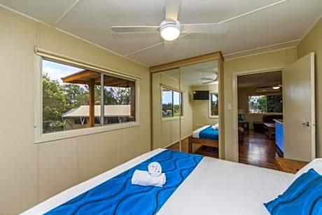 Set among picturesque grounds, Reflections Red Rock - Holiday Park features an beautiful beachfront location. Accommodations options include self-contained cabins, and permanent tents. Red Rock Holiday Park is 10 minutes’ drive from Corindi Beach and 30 minutes’ from The Big Banana. Coffs Harbor City Center is 35 minutes’ drive away. This modern accommodations features a fully equipped kitchen with an oven and a refrigerator. It offers a sofa and a flat-screen TV with a DVD player. All cabins and tents feature a private bathroom with a shower.