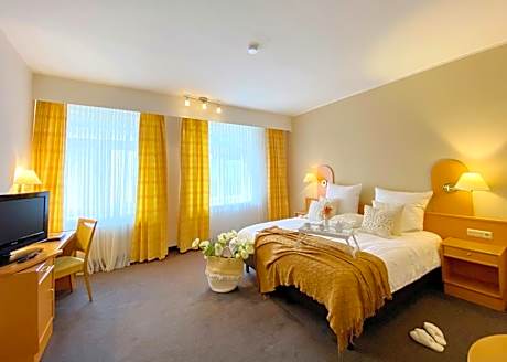 In the middle of the green and with 44 comfortable nonsmoking rooms, REGIOHOTEL Naturresort Ilsenburg awaits you with a wonderful view of the Harz National Park. There are numerous hiking trails in the area. The REGIOHOTEL Naturresort Ilsenburg offers spacious, brightly decorated rooms with free Wi-Fi and panoramic views. You will find relaxation in our wellness area with sauna and sanarium. Make an appointment in advance. We charge a small fee for sauna usage and towels. You can start your day strengthened with a varied breakfast. The first meal of the day is already included in the room price. Hike the Heinrich-Heine-Path, admire the Brocken or go on mountain bike tours. The historic town of Wernigerode and the city of Goslar, a UNESCO World Heritage Site, are also worth a visit. In our restaurant you will be spoiled with delicious Harz specialties, seasonal specialties and Mediterranean dishes.