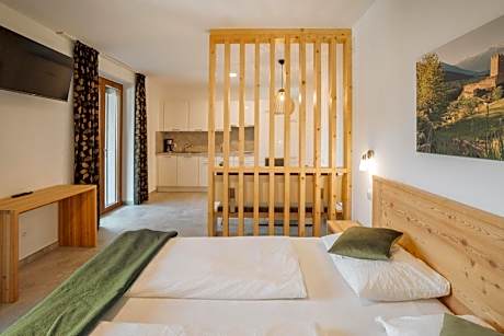 Providing garden views, Residence Karpoforus in Laces provides accommodations, a garden, and barbecue facilities. There's a private entrance at the condo hotel for the convenience of those who stay. There's an outdoor fireplace and guests can make use of free Wifi, free private parking, and an electric vehicle charging station. The condo hotel provides guests with a balcony, mountain views, a seating area, satellite flat-screen TV, a fully equipped kitchen with a toaster and a fridge, and a private bathroom with shower and a hair dryer. A stovetop and kitchenware are also provided, as well as a coffee machine and a kettle. At the condo hotel, all units come with bed linen and towels. Continental and Italian breakfast options with local specialities, juice, and cheese are available. A mini-market is available at the condo hotel. Guests at Residence Karpoforus will be able to enjoy activities in and around Laces, like hiking. Skiing and cycling can be enjoyed nearby, while a bicycle rental service and ski storage space are also available on-site. Main Train Station is 18 miles from the accommodation, while Merano Theater is 18 miles away. Bolzano Airport is 35 miles from the property.