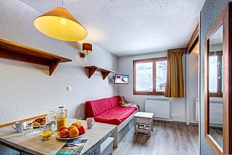 The hotel is located 100 m from the ski resort of Tignes, Val d'Isere, at an altitude of 2, 100 metres, and it is just 200 metres from the ski lifts. There are shops and sports facilities located just 50 metres from the hotel. The nearest train station is approximately 300 metres away. This ski hotel has air conditioning (heating) and comprises 62 accommodation units. Guests are welcomed in the lobby, which offers lift access to upper floors. The studios and apartments come en suite with a shower or a bath. They are equipped with a TV, Internet access and with a functional kitchen, which offers a microwave, fridge, coffe maker, toaster, kettle and dishwasher (except in the study). Heating and a balcony or terrace are standard features of all accommodation units. Ideally located at the foot of the slopes in the top of Val Claret, the residence welcomes you in a traditional Savoyard atmosphere.