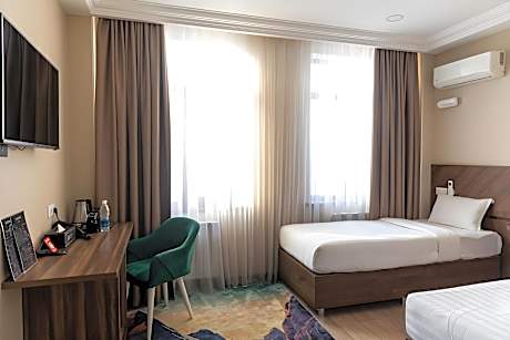 Experience an abundance of unparalleled facilities and features at Resident Hotel Bishkek. Maintain seamless communication using the complimentary Wi-Fi at hotel.Guests can avail parking facilities at the hotel. For extended visits or whenever required, the laundry service ensures your preferred travel garments remain fresh and accessible.During leisurely days and evenings, on-site amenities such as daily housekeeping enable you to fully enjoy your accommodation.At Resident Hotel Bishkek, every guestroom is provided with convenient amenities and fittings to ensure a comfortable stay. Enhance your experience at hotel with the knowledge that certain rooms are equipped with linen service, blackout curtains and air conditioning for your convenience.Certain rooms boast in-room amusement features such as television and cable TV, offering guests an enjoyable stay.In select rooms within the hotel, a coffee or tea maker and instant tea is available to cater to your requirements when desired. It is worth noting that certain guest bathrooms feature a hair dryer, toiletries and bathrobes for your convenience. Begin your day carefree at Resident Hotel Bishkek, as complimentary breakfast is offered for your convenience.