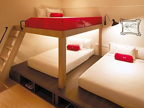Offering free toiletries, this family room includes a private bathroom with a shower. This family room offers a safe deposit box and a TV. The unit offers 3 beds. This room type is ideal for 4 adults and 2 children. The total weight limit for the upper bunk bed is 80kg. Mattress located at the upper bunk bed is strictly not to be moved from its original position. The hotel will impose a fee for the mattress if removed to the lower area. This fee will be multiplied based on the nights stayed.