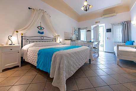 Reverie is a family-run complex of traditional apartments and rooms as unique as the beauty of Santorini island. It is located in Firostefani; a 10-minute walk from the center and close to the caldera. There is a terrace which gives you the chance to enjoy a panoramic view over the caldera and the rest of the Island of Santorini. Suites also have their own private balconies overlooking the caldera. Homemade breakfast is served every morning upon request from 08.00 -10:30. There is a snack bar, while all studios have a kitchenette. Alternatively, you can visit one of the nearby restaurants and cafes. The owners will give you a warm welcome including a traditional drink. A map and guidebook will be also provided to you.