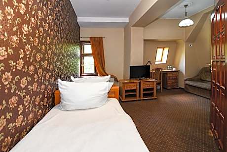 The triple room offers a carpeted floor, heating, as well as a private bathroom boasting a hairdryer. The triple room features a wardrobe, a sofa, parquet floors, a flat-screen TV, as well as garden views. The unit has 3 beds.