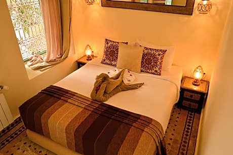 Offering an outdoor swimming pool, Riad Jalina provides accommodations in the center of Marrakesh. The property is close to Djemaa El Fna, Koutoubia, and Le Jardin Secret. The riad offers pool views, a sun terrace, a 24-hour front desk, and free Wifi is available throughout the property. Featuring a patio, the units offer air conditioning and have a flat-screen TV and a private bathroom with shower and bathrobes. At the riad, the units have bed linen and towels. A continental breakfast is available at the riad. Guests may eat at the on-site family-friendly restaurant, which is open for dinner, lunch, and high tea. Guests can also relax in the shared lounge area. Popular points of interest near Riad Jalina include Boucharouite Museum, The Orientalist Museum of Marrakech, and Bahia Palace. Marrakech-Menara Airport is 4.3 miles away, and the property offers a paid airport shuttle service. License Number(s): 00000XX0000