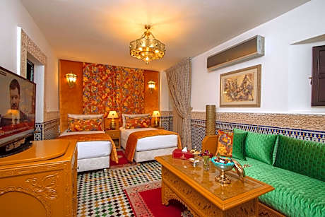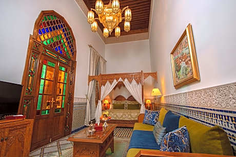 Ideally located in Fez, in the heart of the Medina, close to the French Institute, the guest house welcomes you in a cozy atmosphere. Built in the early 1900, the Riad Myra has been renovated and restored by the best craftsmen in the town. The splendor is evident in its elegant and beautifully decorated rooms and suites. The original Moorish architecture style, a touch of English antique furniture and modern amenities are perfectly matched. The Riad features a large traditional patio, a terrace, a hammam as well as a restaurant and a Moroccan lounge. The attentive staff welcomes you in a refined décor mixed with Moorish architecture. All has been designed to offer comfort, well-being and relaxation. License Number(s): 30000MH1810