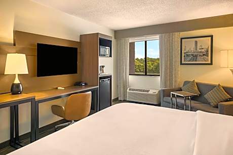 Located off Exit 88 and Ann Street, the Radisson Hotel Grand Rapids Riverfront is a boutique Grand Rapids hotel less than 1.9 mi from downtown Grand Rapids near U.S. Route 131. The property is entirely nonsmoking and offers complimentary WiFi to all guests. Guest rooms feature a 42-inch flat-screen TV, microwave, coffee maker and refrigerator. Select rooms rooms include a sofa bed. Some rooms have river views. A business center providing printing and browsing services is available to all guests. guest laundry services are also available at additional cost. The Radisson Hotel Grand Rapids Riverfront is less than 1.9 mi from downtown Grand Rapids. It is less than 5 minutes' drive of Comstock Riverside Park, De Vos Place, and The Van Andel Arena.