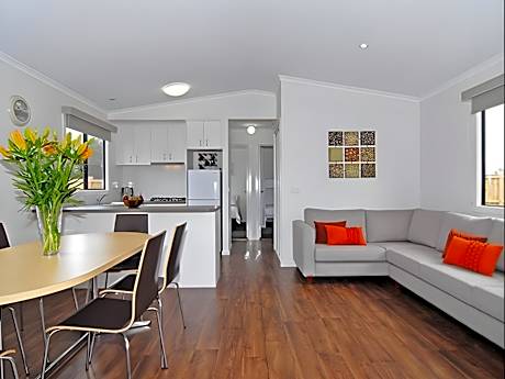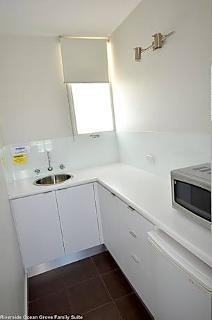 Centrally located to all the fabulous little towns that makes up the beautiful Bellarine Peninsula, Riverside Ocean Grove offers modern self-contained accommodations, and motel-style rooms. It features a solar-heated outdoor pool and BBQ facilities. Free WiFi and free on-site parking is available. The motel rooms offer an private bathroom and a small kitchenette with a microwave, a refrigerator, toaster, kettle and kitchenware. The cabins feature an open-plan living area with a fully-equipped kitchen and a deck area with a BBQ. All rooms have a flat-screen TV with a DVD player and 6 cable channels. Riverside Ocean Grove is within 0.7 mi from the main beach and town center, which offers a range of dining options. It is 2 minutes' walk from Ocean Grove Golf Course and 10 minutes' walk from Ocean Grove Bowling Club. The picturesque town of Barwon Heads is 5 minutes' drive away through “The Narrows”. Popular activities along the Bellarine Peninsula include surfing, golfing, wine tasting and fishing.