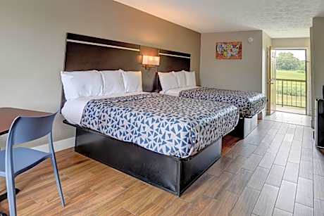 The Econo Lodge® Sevierville-Pigeon Forge on the River hotel in Sevierville, TN, is the perfect place to get a great deal on a simple stay. You can rely on us to get you up in the morning with our delicious free coffee and access to the free basic WiFi to check up on the outside world right away. You’ll want to make that check brief and get out into Sevierville, because there’s plenty to see and do. Stay here if you want a hassle-free trip out to Dollywood and associated Splash Country Waterpark. Enjoy shows, rides, local artisan shops and more in one of Tennessee’s most exciting tourist attractions. If you want some quiet time outdoors instead, then Sevierville Golf Course and world-famous Great Smoky Mountain National Park sit close by. Go on a drivethrough of the indescribable mountain beauty and make sure to dress warm—you’re going high up! No matter what you do, you can wash off the day in the seasonal outdoor pool to get ready for the next one. Travelers eat well in Sevierville, and our rooms make it convenient to use your leftovers with the refrigerator and microwave. The flatscreen TV entertains our guests. Our guests love to take in the river views, which every single one of our rooms provides.