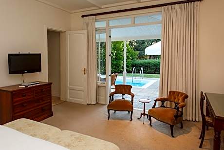 Surrounded by a rose garden, this 5-star hotel is located en route to the Cango Caves and Ostrich Farms. It offers a wellness center, well-equipped gym and a beauty clinic. Rooms at Rosenhof Boutique Hotel are stylishly decorated, each in an individual style. All are equipped with air conditioning, satellite TV and a mini-bar. Some feature a private swimming pool. Rosenhof has an on-site pub and several luxury lounges with fireplaces where guests can relax and admire works from well-known South African artists. Rosenhof Boutique Hotel is located 31 mi from George Airport .