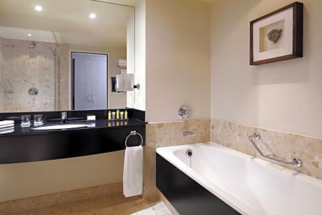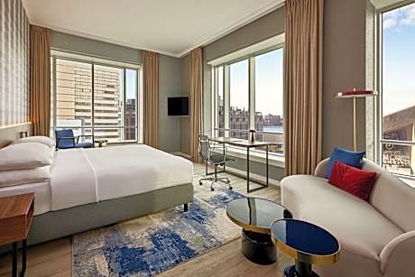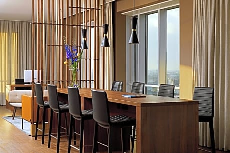 Nestled in the very heart of Rotterdam, a bustling city known for its rich history, contemporary architecture, and innovation, the hotel is centrally located and very well connected by public transport, making it the perfect place from which to travel within and outside of the city. The hotel features 228 spacious and sophisticated guest rooms, 4 versatile boardrooms, a conference room, flexible meeting spaces, and a team of dedicated professionals. The Rotterdam Marriott Hotel offers stylish rooms with modern facilities, blending form and function to transform a characteristic stay into a restorative retreat. With spacious bathrooms, flexible seating options, and subtly stylish touches, guests can work and relax the way they want. In the lobby, you will find Pillars Bar & Kitchen, a restaurant where the menu is casual and revolves around quick bites, sharing dishes, and elegant main courses. For those with a passion for culinary excellence, the Michelin-starred restaurant, The Millèn, offers an exciting experience, serving fresh and seasonal dishes with cosmopolitan flavors. The Rotterdam Marriott Hotel has an M Club Lounge for loyal Marriott Bonvoy members, a well-equipped fitness center, an in-house security team, and a dedicated Guest Relations team always prepared to assist you with whatever you may need. Bike rental and car rental are available at this hotel, and the area is popular for biking. Rotterdam’s main shopping area is less than a 5-minute walk away. Both Schiphol and Rotterdam The Hague Airport are easily and quickly accessible by public transport. International trains, such as the Eurostar and Deutsche Bahn, all arrive at Rotterdam Central Station.