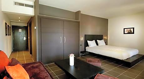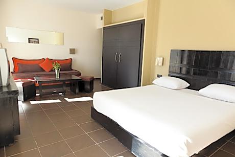Set on the beach of Agadir, this All inclusive hotel features 2 on-site bars offering free drinks. Guests are invited to relax on the poolside terrace, in the wellness center or the beach at the reserved area with lounge chairs and towel service.. With views of the beach or the pool, all of the air-conditioned rooms feature a contemporary décor and satellite TV. The private bathrooms are equipped with complimentary toiletries. Hotel Royal Decameron Tafoukt has 2 restaurants called Café del Mar and Muso, proposing Moroccan and international cuisines. A breakfast buffet is served every morning. The hotel’s night club, The Factory, has a DJ and an open bar. A beauty salon and a laundry service are available and the hotel provides Wi-Fi access. Free parking is possible and the Agadir Al Massira Airport is 17 mi away. The hotel is 7.5 mi from the Agadir Royal Golf Club and 8.1 mi from the Sous-Massa National Park. Christmas supplement – mandatory 70€ per adult and 35€ per child New Year supplement – mandatory 75€ per adult and 38€ per child