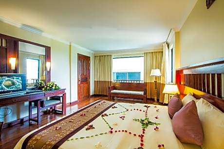 Experience an abundance of unparalleled facilities and features at Royal Empire Premium Hotel.Maintain seamless communication using the complimentary Wi-Fi at hotel. Discovering Siem Reap becomes even more accessible through the taxi and car hire amenities provided at the hotel.For visitors traveling by automobile, complimentary parking is available. During your stay at this fantastic hotel, the attentive front desk personnel can provide you with a range of amenities such as concierge service, express check-in or check-out, luggage storage and safety deposit boxes. In search of city's top entertainment, seek assistance at the hotel's ticket service and tours for reservations. During chilly days and evenings, the hotel provides an in-house fireplace to ensure your warmth. At the hotel, utilize the on-site dry cleaning service and laundry service to maintain your beloved travel attire fresh, allowing you to bring fewer clothes.Craving relaxation? Make the most of your stay at the Royal Empire Premium Hotel with convenient amenities like 24-hour room service, room service and daily housekeeping at your disposal.For all your minor, last-minute requirements, the convenience stores can promptly cater to them, eliminating the need to venture out. Kindly note that smoking is prohibited in the hotel to ensure fresher air for all visitors. For visitors wishing to smoke, designated smoking zones can be found.At Royal Empire Premium Hotel, every guestroom is provided with convenient amenities and fittings to ensure a comfortable stay. Enhance your experience at hotel with the knowledge that certain rooms are equipped with linen service and air conditioning for your convenience.A few accommodations within Royal Empire Premium Hotel offer unique design elements such as a balcony or terrace. Certain rooms boast in-room amusement features such as television and cable TV, offering guests an enjoyable stay.In select rooms within the hotel, a refrigerator, bottled water, a coffee or tea maker and mini bar is available to cater to your requirements when desired. It is worth noting that certain guest bathrooms feature a hair dryer, toiletries, bathrobes and towels for your convenience. Begin your day with a scrumptious on-site breakfast available each morning at Royal Empire Premium Hotel. Begin your day feeling refreshed and invigorated as you enjoy a delightful cup of quality coffee available at the cafe situated within the hotel. At the hotel, an assortment of easily accessible and delicious meal choices are available to satisfy your appetite whenever it strikes.Enjoy an entertaining evening with your fellow travelers at the hotel's bar.At the hotel, discerning guests can also enjoy on-site culinary facilities like BBQ facilities tailored to their preferences.During your stay at hotel, an array of engaging activities and amenities guarantees a delightful experience.Conclude your holiday perfectly with a visit to massage, hot tub, steam room, spa and sauna on your final days.Be sure to drop by the pool at hotel at least once during your stay.At Royal Empire Premium Hotel, utmost care is taken to ensure guests' comfort. Relish your preferred beverage in your swimwear by the hotel's poolside bar. Discover the fitness amenities at hotel to maintain your health and strength during your getaway.