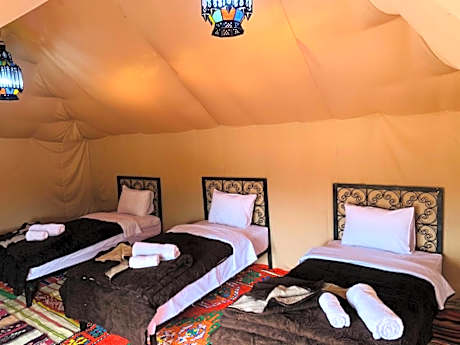 Providing garden views, Sahara wellness camp in Merzouga provides accommodations and a garden. This 5-star bed and breakfast offers ski-to-door access, a 24-hour front desk, and free Wifi. There's a restaurant serving African cuisine, and free private parking is available. At the bed and breakfast, every unit is fitted with a balcony. A terrace with an outdoor dining area and mountain views is offered in each unit. At the bed and breakfast, all units are equipped with a shared bathroom with free toiletries. Buffet and vegan breakfast options with fruit and cheese are available. There is an on-site coffee shop. Bike rental and car rental are available at the bed and breakfast, and the area is popular for skiing and cycling. The bed and breakfast also offers outdoor fireplace and a picnic area for a day outdoors. Moulay Ali Cherif Airport is 83 miles away, and the property offers a paid airport shuttle service.