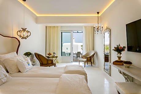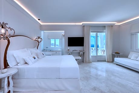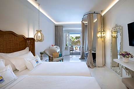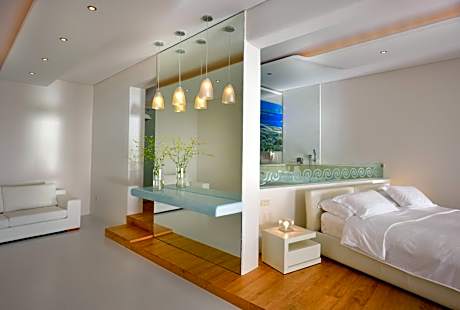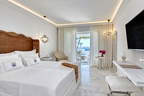 Occupying a 20,000-square-yard land, Saint John Hotel Villas & Spa features an infinity pool with open views to its private beach. Rooms with spa bath, fine dining, and famous bars await guests. The elegant rooms offer sea or garden views. They come with many comforts, such as free Wi-Fi, cable and satellite mini-bar, Bathrobes & slippers, luxury bath amenities, coffee facilities. A Breeze Pool Bar Restaurant & 3 gourmet as well as mediterranean restaurants offer guests different dining and drinking opportunities from casual to romantic. The Aphrodite Spa & Beauty Center provides with 3 Treatment Rooms & 1 Private Couple's Room with Hot tub and Sauna, Hammam, Hair & Manicure Salon, Fitness Center & Relaxation Area. The state-of-the-art facilities include saunas, hammam and indoor heated pools. Mykonos Airport is 2.5 mi away, and the new Mykonos Port is 3.7 mi away. The bustling Mykonos Town (Chora) is 2.5 mi away. Free private parking is available.