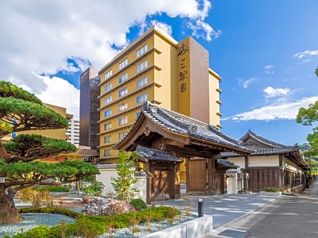 Sansuien provides flawless service and all the necessary facilities for visitors.Stay connected with your associates, as complimentary Wi-Fi is available during your entire visit.When arriving by car, take advantage of the ryokan's convenient on-site parking facilities.The ryokan offers reception amenities including luggage storage and safety deposit boxes to ensure a comfortable stay for guests. Smoking is permitted solely in the specified smoking zones allocated by ryokan. In order to ensure the utmost level of relaxation, the guestrooms feature an inviting design and are equipped with all basic necessities, creating a delightful stay experience.To ensure your satisfaction, certain rooms in the ryokan come fitted with air conditioning for a more pleasant stay.Selected rooms offer in-room amusement like television as a source of entertainment for guests to enjoy. You'll be pleased to know that select guest bathrooms offer bathroom amenities such as a hair dryer, ensuring a comfortable stay. Start your day stress-free at Sansuien as breakfast is made available for you on the premises. Upon your arrival, don't miss experiencing bar for enjoyable in-house evening entertainment. Throughout the day and night, guests can enjoy light refreshments with the ryokan offering vending machines.Throughout the day, engage in the entertaining activities available at Sansuien. Unwind and conclude each day delightfully by stopping by massage, steam room and spa, ensuring a soothing experience.