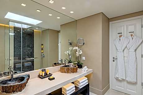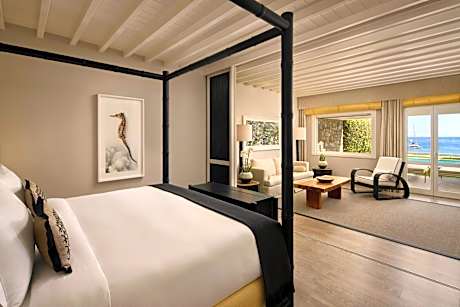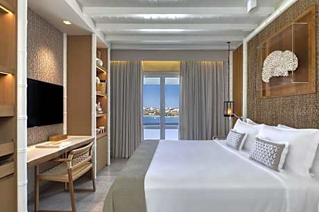 Nestled on a secluded peninsula overlooking the Aegean Sea, within 2.5 mi of Mykonos town, Santa Marina, Mykonos features two different restaurants, a beach bar on the private sandy beach, and a fully equipped spa. Rooms at Santa Marina feature an organic modern style and open out to private balconies. They come with a satellite TV, air conditioning and mini-bar. In the bathrooms you will find bathrobes, slippers and free toiletries for extra comfort. Elais by Santa Marina Mykonos, celebrates a Greek cuisine homecoming with Mediterranean influences. Experience an authentic yet bespoke culinary journey through genuine flavors and a well curated list with wines all over the Greek and worldly terroir. Santa Marina has 2 infinity pools overlooking the crystal blue sea, while a floodlit tennis court and a tennis coach are also available. Guests can also visit the on-site fully equipped gym, the hot tubs, the sauna and the steam bath. Children’s playground and a children’s pool are offered to junior guests. Santa Marina also hosts 2 fully appointed rooms for any business requirements. Exclusive services with private helicopter and jet plane, as well as yacht and speedboat services from the private marina are available upon request. Mykonos Airport is 2.5 mi away, while the sandy beaches of Psarrou and Platys Gialos can be reached within a 10-minute drive. Free private, on-site parking is provided.
