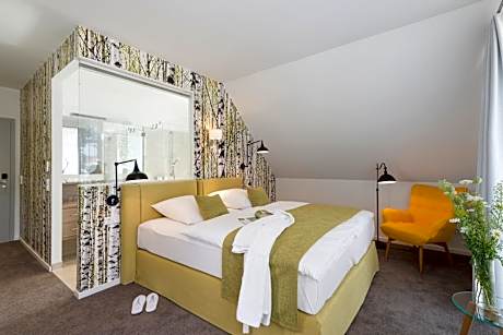 This hotel and café was set up in 2015 on a historical site in the heart of Bispingen . Schmucke Witwe combines a modern and traditional style. Each of the 8 comfortable double rooms has its own strong character, featuring harmonious colors, noble design and expressive style elements. All rooms include a Smart TV, free WiFi and box-spring beds. Each room also cites a poem by Herman Löns, and shows motifs from the Lüneburg Heath, placing you in touch with your surroundings. Guests at the Schmucke Witwe can enjoy a hearty breakfast before going for a long hiking, cycling or horse riding tour. Bispingen's main attractions such as the Snow Dome, the indoor/outdoor carting track and the Aqua Mundo bath in Center Parcs are all around 1.6 mi away, and there is a shuttle bus that stops directly outside the hotel. Homemade or small savory snacks are served in the café in the afternoon. There are many nice restaurants for dinner nearby. Guests can also round off a visit to the Schmucke Witwe by visiting the on-site gift shop, and are welcome to ask the friendly hosts why the hotel/café is called Schmucke Witwe.