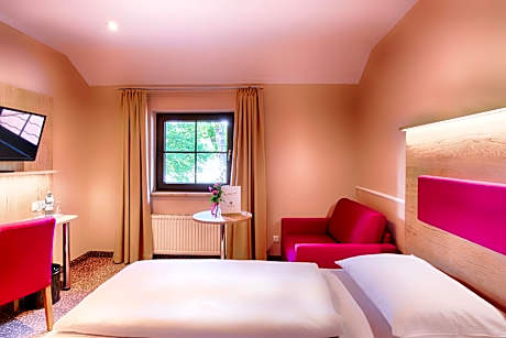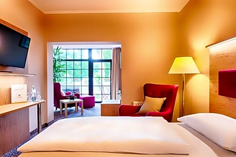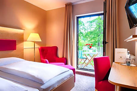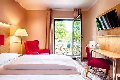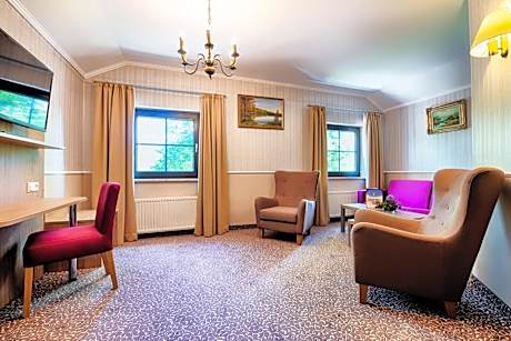 Boasting an beautiful, lakeside location within a large forest, the Hotel Seeschloß in Wandlitz promises relaxation and recreation, just a 45-minute drive from Berlin. Nearly all of the hotel’s individual rooms and suites offer a wonderful view of the lake, as does the inviting conservatory. The rooms are located in the main building and the annex building (Bedhouse "Hotel am Obersee "). A bathing beach lies just 328 feet away, and the hotel features a private park with wicker beach chairs. Use one of the hotel’s boats to go rowing or fishing. When you are not exploring the beautiful natural surroundings by bike, on foot or by horse-drawn carriage, relax on the hotel’s garden terrace or enjoy a meal in the restaurant. During bad weather, you can use the sauna.