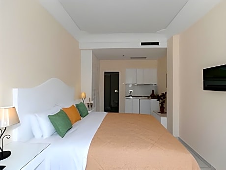 Facing the Cretan Sea, this Cycladic-style resort hotel is located right on Perissa Beach and provides guests with traditional accommodations on the island of Santorini. Close to the neighboring towns of Perivolos and Kamari, Sellada Beach includes only a small number of guest rooms and apartments. Enjoy a swim in the pool, soak up the sun on your balcony or visit the sheltered beach. The snack bar-restaurant is the ideal place to have a coffee, drink or meal while taking in the beautiful sea view. Sellada Beach provides you with the ideal base from which to explore the island. All rooms, studios and apartments boast a light interior, with most including double gazed windows. They are equipped with air conditioning, satellite TV and free Wi-Fi access.