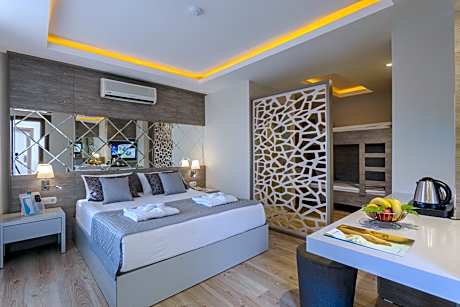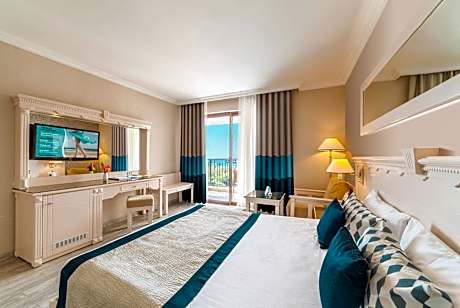 Boasting a blue flag sandy beach, Hotel Turan Prince - Ex Sentido Turan Prince Resort is located at the seafront of Antalya. Property features a spa center, swimming pool and elegantly decorated apartments including air conditioning and furnished balconies. Aquapark for children and adults are also offered. Warm colored chic rooms of Hotel Turan Prince - Ex Sentido Turan Prince have sleek and modern décor. They all feature a TV with satellite channels and a mini-bar. Certain rooms feature a seating area. Fitted with marble walls and a bathtub, each bathroom comes with free toiletries, a hairdryer and slippers. Guests can start the day with freshly squeezed fruit juices offered at the breakfast. You can sample Turkish cuisine or various international flavors in main restaurant. Guests can also enjoy their meal in the outdoor dining area of the restaurant accompanied by the beautiful views of Mediterranean Sea. Garden Bistro Restaurant serves an à la carte menu which includes a variety of different tastes. The resort’s entertainment staff arranges activities all day long including games, contests and shows. Blue Bar features local wine tastings and cooking sessions for guests to enjoy. Guests can also play tennis or relax with a traditional Turkish bath. There is a nightclub at the property and free private parking is also available on site. Antalya Airport is 34 mi from Hotel Turan Prince - Ex Sentido Turan Prince Resort. Antique city center of Side is 7.5 mi from the resort and Manavgat town center is 11 mi away.
