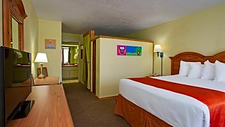 This Kissimmee Seralago Hotel and Suites Main Gate East is adjacent to Old Town amusement park off US Highway 192. Features include 2 heated outdoor pools with 2 hot tubs . A flat-screen cable TV, microwave, and dining area are standard in each room along with a refrigerator. Suites at Seralago Hotel and Suites Main Gate East have a sofa bed. A tennis court and a fitness center are available to guests throughout their stay. Kids can enjoy the games room, and the on-site ticket service can help guests decide which local attractions to visit. The hotel is 4.2 mi from the Walt Disney World Resort and 2.6 mi from Disney's Typhoon Lagoon. Orlando International Airport is 23 minutes’ drive away. The hotel have 24-hour security staff